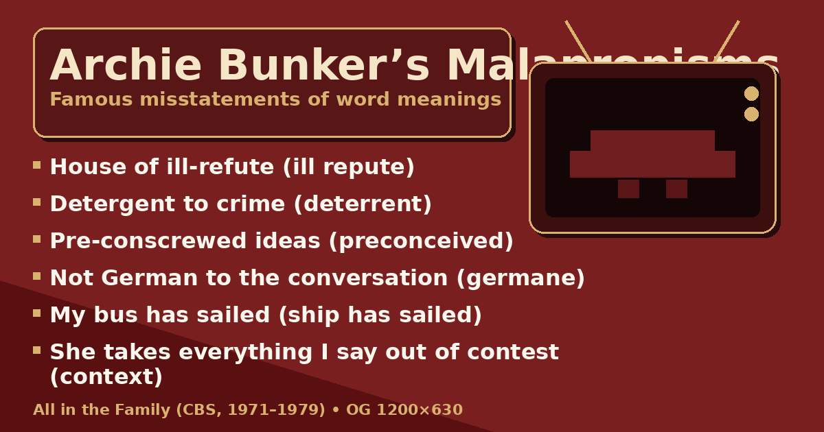 Archie didn’t misuse words; he remodeled them. Here are some of his finest linguistic renovations: