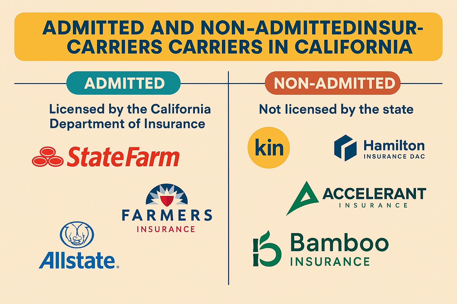 Here are examples of admitted and non-admitted insurance carriers in California: