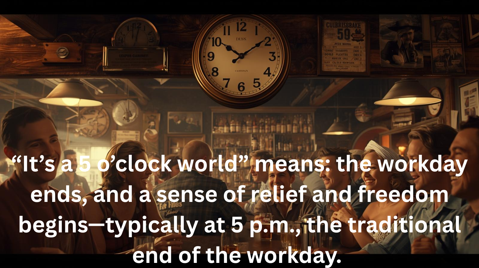 “It’s a 5 o’clock world” comes from The Vogues’ 1965 hit “Five O’clock World,” written by Allen Reynolds. It’s shorthand for the life that begins when the workday ends—when your time becomes your own again.