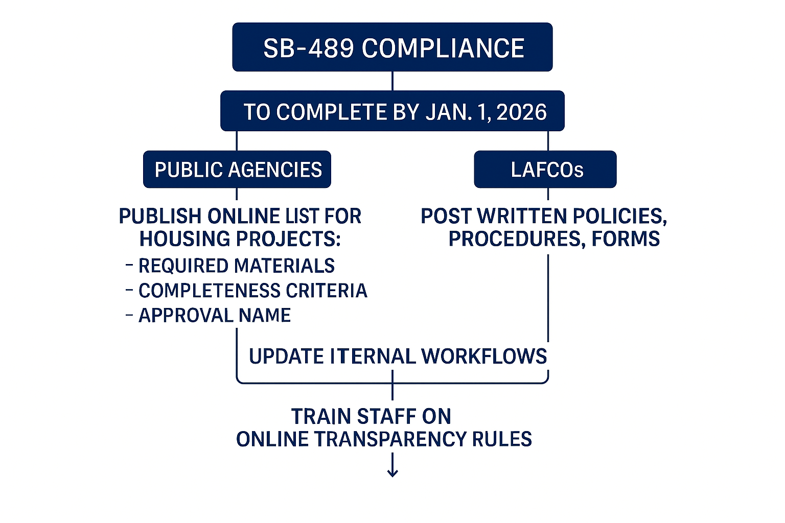 SB‑489 closes transparency gaps and enforces streamlined timelines across all housing-related approvals, including those handled by LAFCOs. This ensures developers have transparent, predictable processes and agencies adopt modern, accessible workflows.