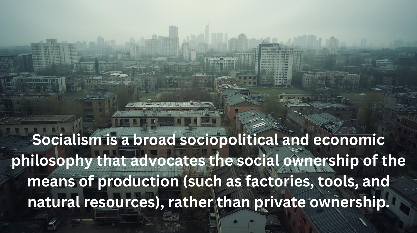 Socialism is a broad sociopolitical and economic philosophy that advocates the social ownership of the means of production (such as factories, tools, and natural resources), rather than private ownership. The core goal is to achieve a more egalitarian society by distributing wealth and resources more evenly, often through a government enterprise (administrative state) or a collective body, to meet human needs rather than to accumulate profit.