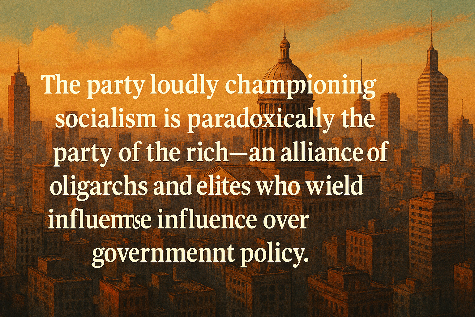 In today’s political landscape, the party loudly championing socialism is paradoxically the party of the rich—an alliance of oligarchs and elites who wield immense influence over government policy. Far from dismantling privilege, socialism under their stewardship becomes a mechanism for consolidating wealth and power. While rhetoric promises equality and justice, the reality is stark: the rich thrive, their fortunes safeguarded and expanded by state intervention. At the same time, the majority languishes in economic stagnation and diminished opportunity.