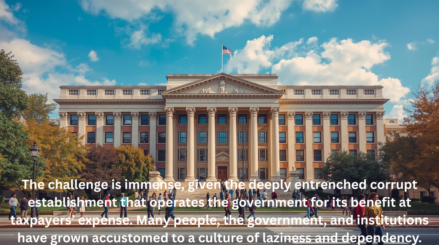 The new administration under Donald J. Trump faces the urgent task of restoring the U.S. to economic stability. The challenge is immense, given the deeply entrenched corrupt establishment that operates the government for its benefit at taxpayers’ expense. Many people, the government, and institutions have grown accustomed to a culture of laziness and dependency. However, it’s crucial to remember that change is possible, and many will support efforts to return the U.S. to its former economic greatness.