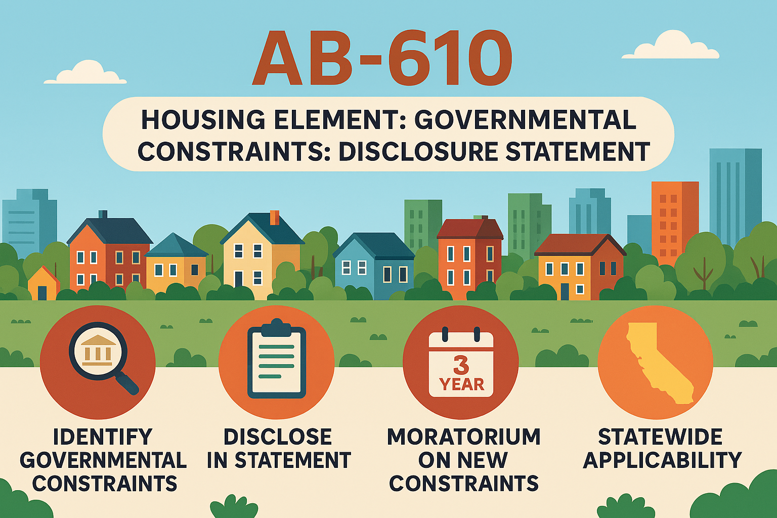 AB-610 represents a significant step toward aligning local housing policies with California’s broader housing production goals. By requiring a detailed disclosure of governmental constraints and restricting the introduction of new ones, the bill seeks to ensure that housing elements are not just aspirational documents—but enforceable commitments to building the homes Californians need.