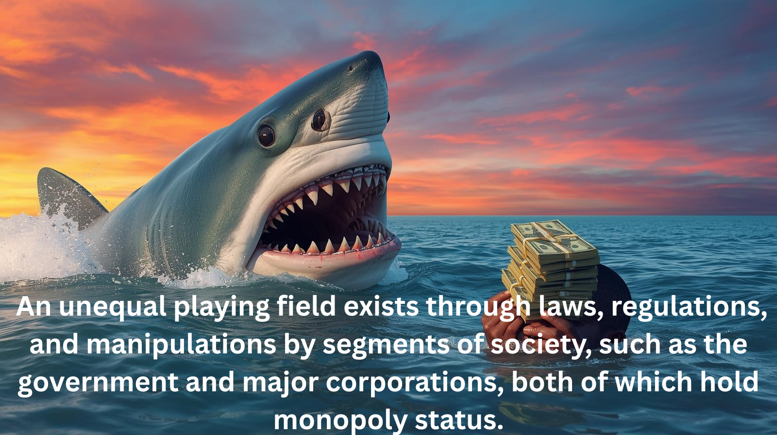 Are We Merely Sharks For The Deep State? Living in a corrupt society is challenging, especially when it leads to such stark inequality. An unequal playing field exists through laws, regulations, and manipulations by segments of society, such as the government and major corporations, both of which hold monopoly status. This inequality leads to a lack of opportunities for the majority, perpetuates poverty, and undermines the principles of justice and fairness. Our governance has been a masterclass in manipulation for the past four years. Truth is twisted, propaganda is rampant, the media is controlled, and dissent is silenced. We’re left to navigate a world of misinformation. Money begets access, influence, and power. The term” oligarchy’ is not just a name; it’s a reality. It defines a country where a small group of people has an iron grip over its organization and institutions, leaving the rest of us feeling powerless. An unequal playground makes the commoner feel like Shark Bait because he (she) has none of the above. We are mere pawns in the corrupt system, and it’s time to change that.