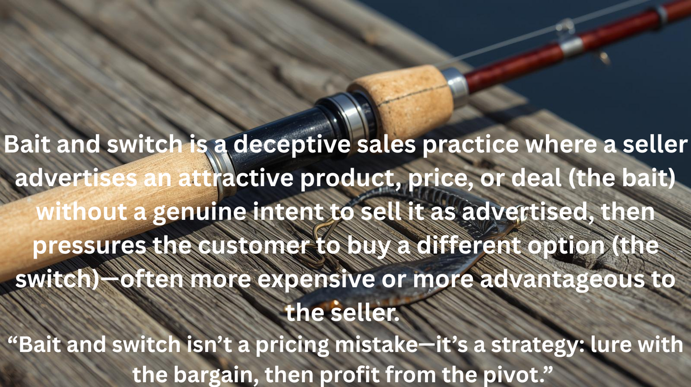 “Bait and switch isn’t a pricing mistake—it’s a strategy: lure with the bargain, then profit from the pivot.”