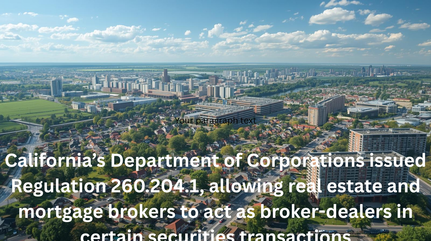 California’s Department of Corporations issued Regulation 260.204.1, allowing real estate and mortgage brokers to act as broker-dealers in certain securities transactions. This authority is subject to strict obligations under Business & Professions Code § 10232.45, which require brokers to conduct comprehensive due diligence on both borrowers and private investors. These measures aim to ensure suitability, transparency, and risk mitigation in hard money lending.