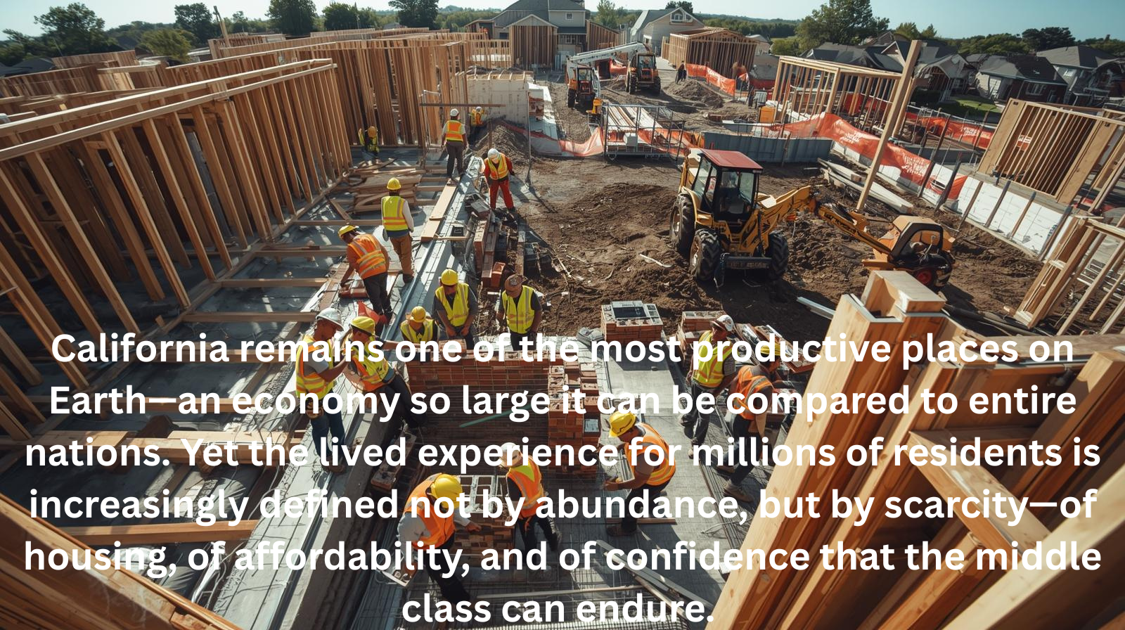 California remains one of the most productive places on Earth—an economy so large it can be compared to entire nations. Yet the lived experience for millions of residents is increasingly defined not by abundance, but by scarcity—of housing, of affordability, and of confidence that the middle class can endure. California is rich in output but short on breathing room.