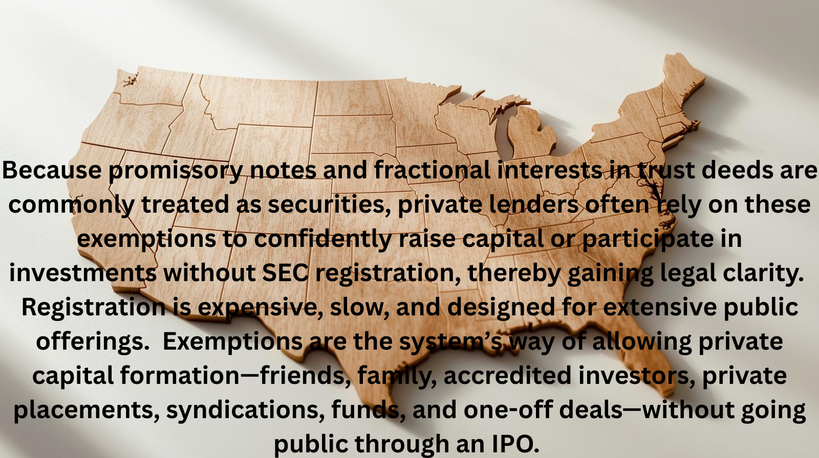 Because promissory notes and fractional interests in trust deeds are commonly treated as securities, private lenders often rely on these exemptions to confidently raise capital or participate in investments without SEC registration, thereby gaining legal clarity.