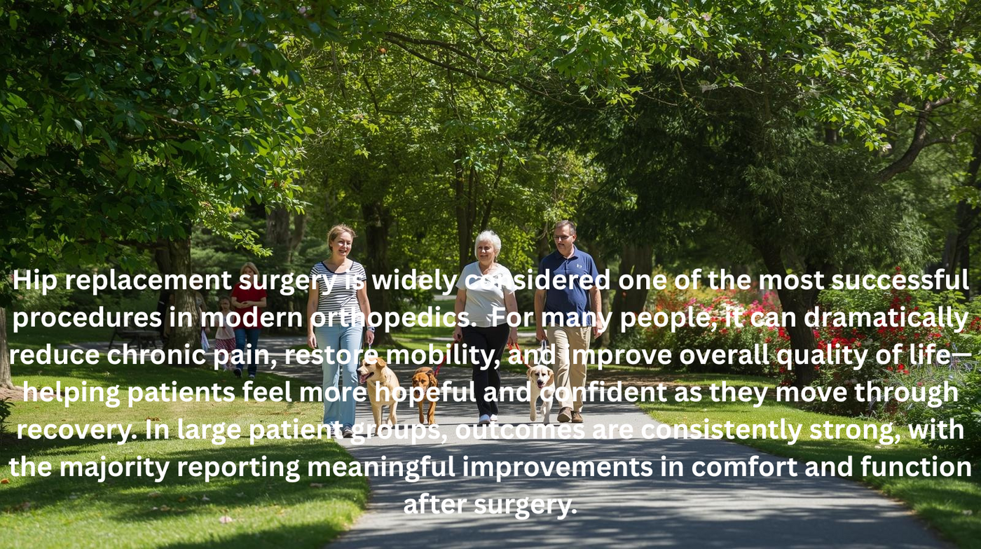 Hip replacement surgery is widely considered one of the most successful procedures in modern orthopedics. For many people, it can dramatically reduce chronic pain, restore mobility, and improve overall quality of life—helping patients feel more hopeful and confident as they move through recovery. In large patient groups, outcomes are consistently strong, with the majority reporting meaningful improvements in comfort and function after surgery.