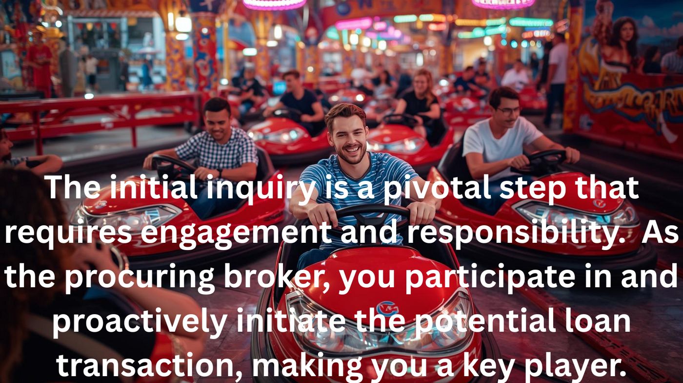 · The initial inquiry is a pivotal step in which engagement and responsibility are crucial. As the procuring broker, you participate in and proactively initiate the potential loan transaction, making you a key player. Ensure you understand and comply with all applicable legal and regulatory requirements at this step to maintain compliance and protect your practice.