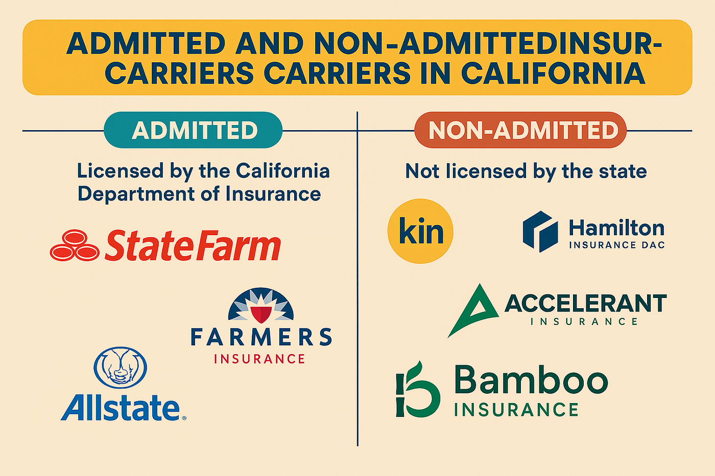 Here are examples of admitted and non-admitted insurance carriers in California: