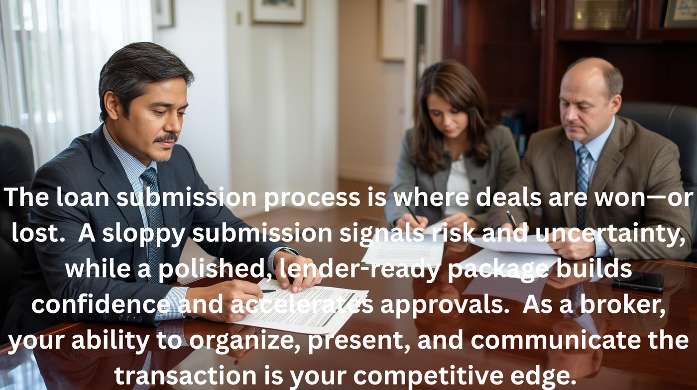 The loan submission process is your chance to control the lender’s first impression. When you lead with clarity, transparency, and Professionalism, you don’t just submit a loan—you sell an opportunity.