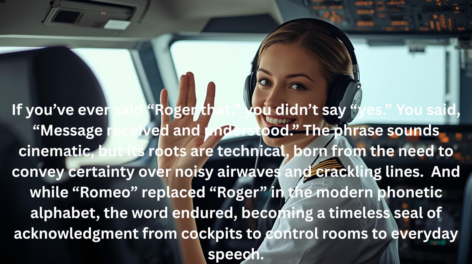 Why it stuck: In 1956, the NATO/ICAO phonetic alphabet standardized “R” as “Romeo.” But the habit of saying “Roger” for “received” was so entrenched in aviation and military culture that it persisted—and still signals clear acknowledgment today.
