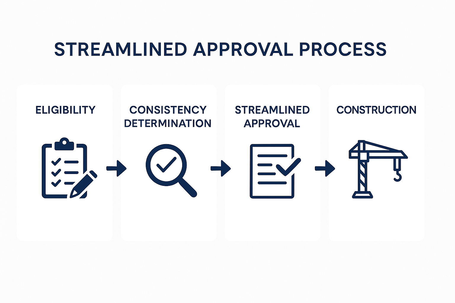 - Approve or deny the project within a fixed timeframe, without delays from public hearings or appeals