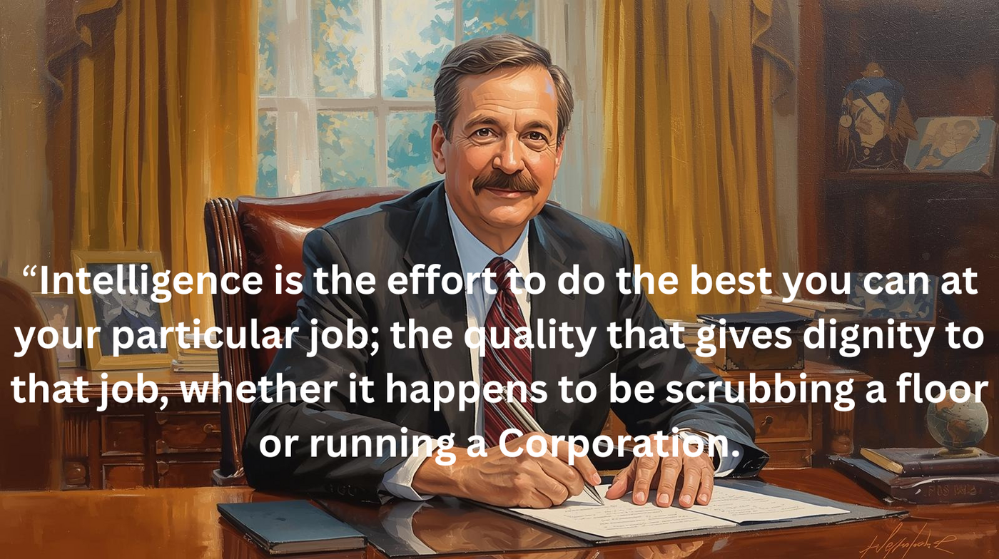 — Tim Notke (Basketball coach, highlighting that persistence can overcome inherent advantages). - “Intelligence is the effort to do the best you can at your particular job; the quality that gives dignity to that job, whether it happens to be scrubbing a floor or running a Corporation.