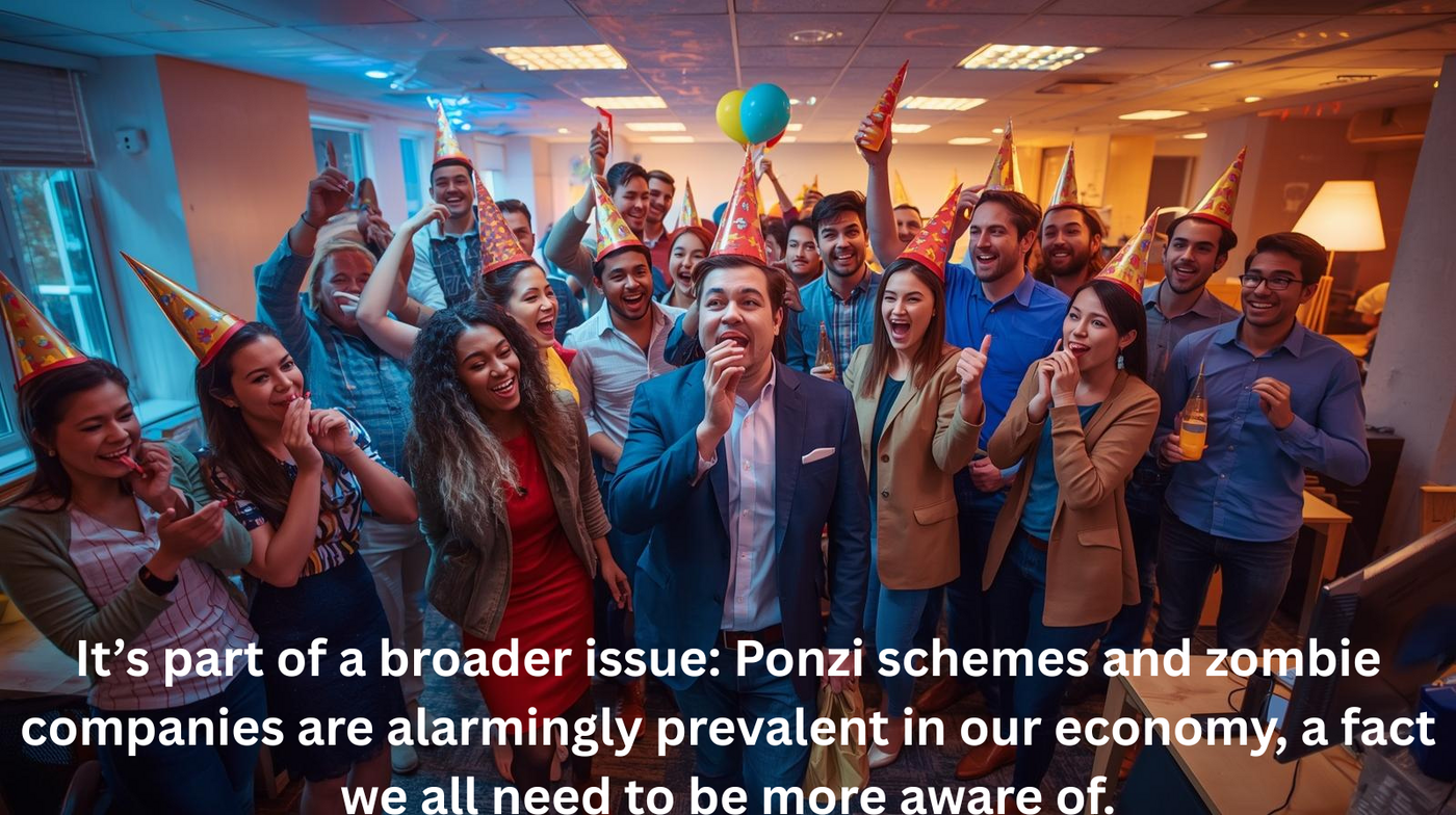 We have all heard of the phrase Ponzi Scheme. Charles Ponzi was a slick promoter in Florida who diced up orange groves in the early century and sold bundles of contracts, now called securities, to the public, promising hefty financial rewards The problem was that the scheme only worked for early entrants by having the promotor, Charles Ponzi, find later entrants to invest, which provided a return of capital plus a promised yield, like a giant bigger-fool theor. This strategy, which sounds eerily familiar, is not an isolated incident. It’s part of a broader issue: Ponzi schemes and zombie companies are alarmingly prevalent in our economy, a fact we all need to be more aware of.