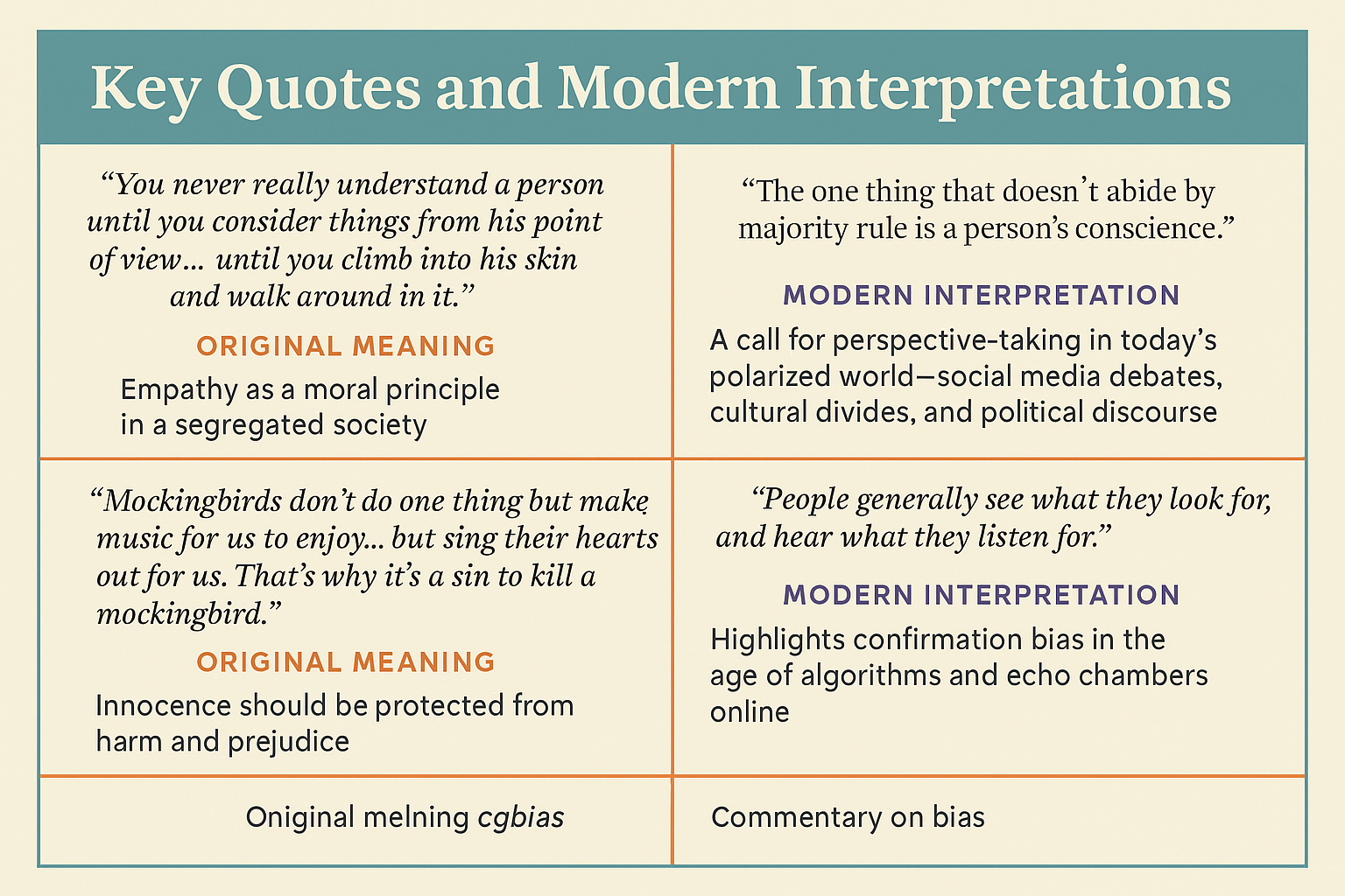 More than six decades later, To Kill a Mockingbird remains culturally significant—but for new reasons as well as old. Racial inequities persist in policing, housing, and the courts, making Tom Robinson’s trial feel hauntingly familiar. The novel’s powerful plea for empathy—“You never really understand a person until you consider things from his point of view”—is urgent in an era marked by political polarization and social fragmentation. Atticus Finch continues to symbolize ethical leadership, though modern readers also critique the book’s limitations, such as its “white savior” framing. These discussions underscore its evolving role: not just as a classic, but as a springboard for deeper dialogue about justice and representation.