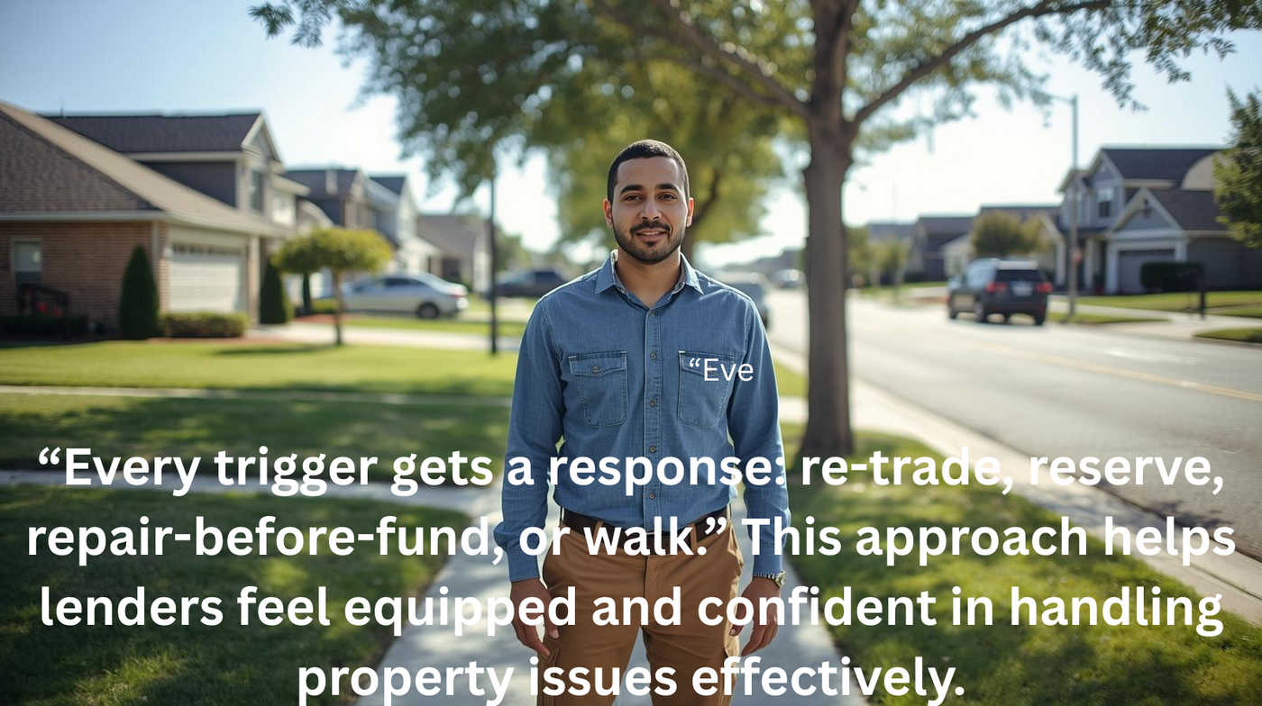 - Re-trade / walk-away: If remediation cost/time threatens the loan term, exit.