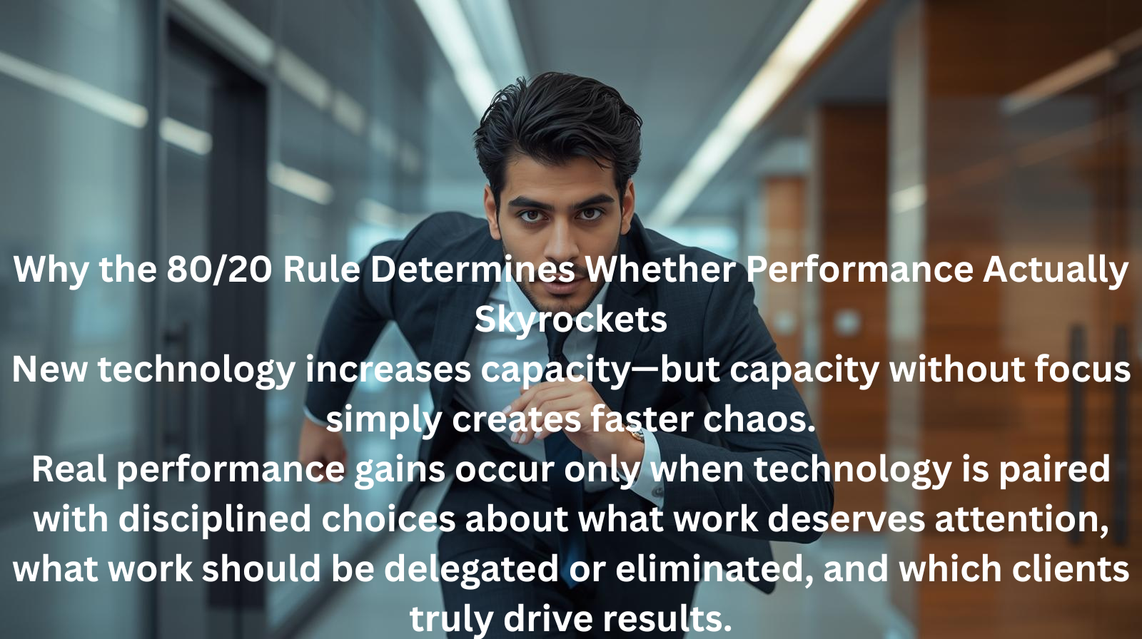 New technology increases capacity—but capacity without focus simply creates faster chaos. Real performance gains occur only when technology is paired with disciplined choices about what work deserves attention, what work should be delegated or eliminated, and which clients truly drive results.