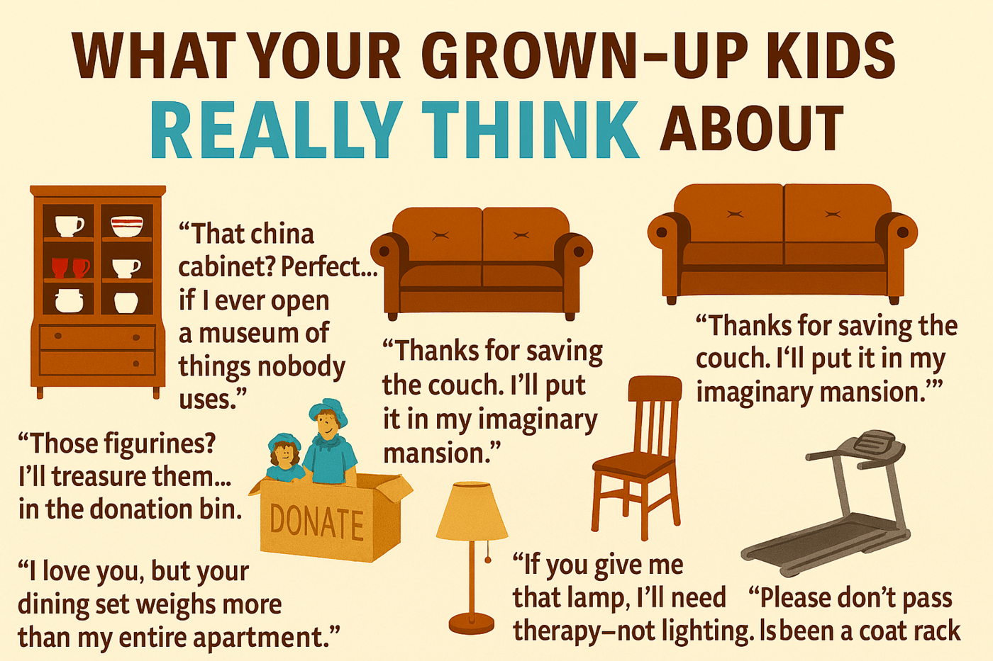 Bottom Line: Your grown-up kids don’t want a museum of outdated furniture—they want freedom from clutter. Holding onto old possessions “for them” often creates stress, not gratitude. Instead of paying to store items no one will use, turn nostalgia into action: keep the memories, let go of the stuff. Declutter now, reclaim your space, and invest in experiences that matter—because the best inheritance isn’t a china cabinet, it’s a life well-lived.