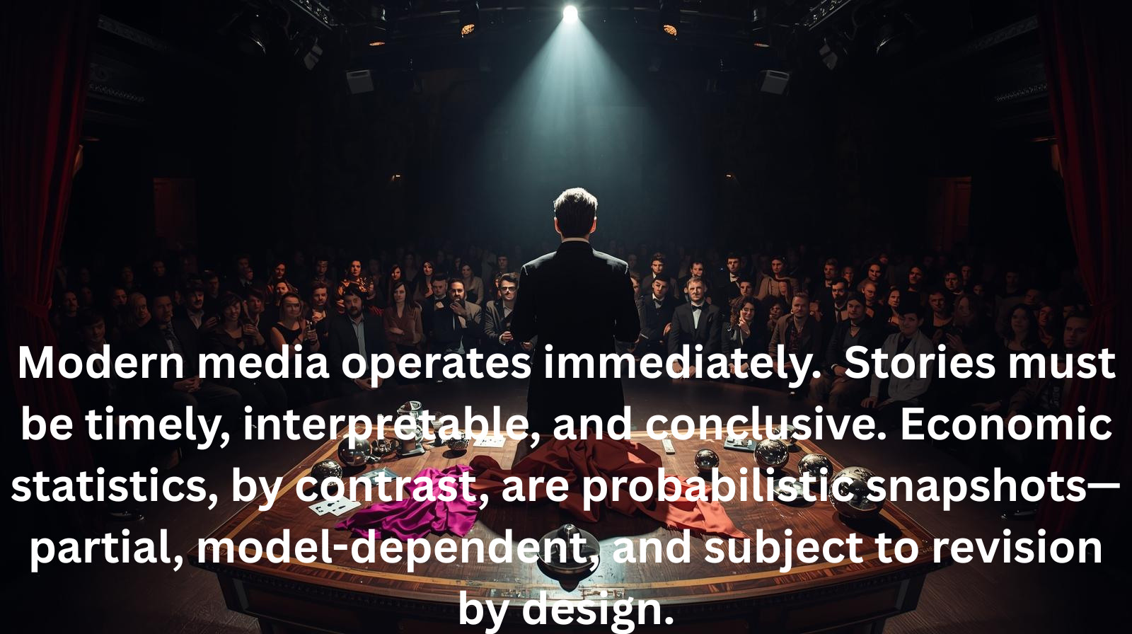 Modern media operates immediately. Stories must be timely, interpretable, and conclusive. Economic statistics, by contrast, are probabilistic snapshots—partial, model-dependent, and subject to revision by design.